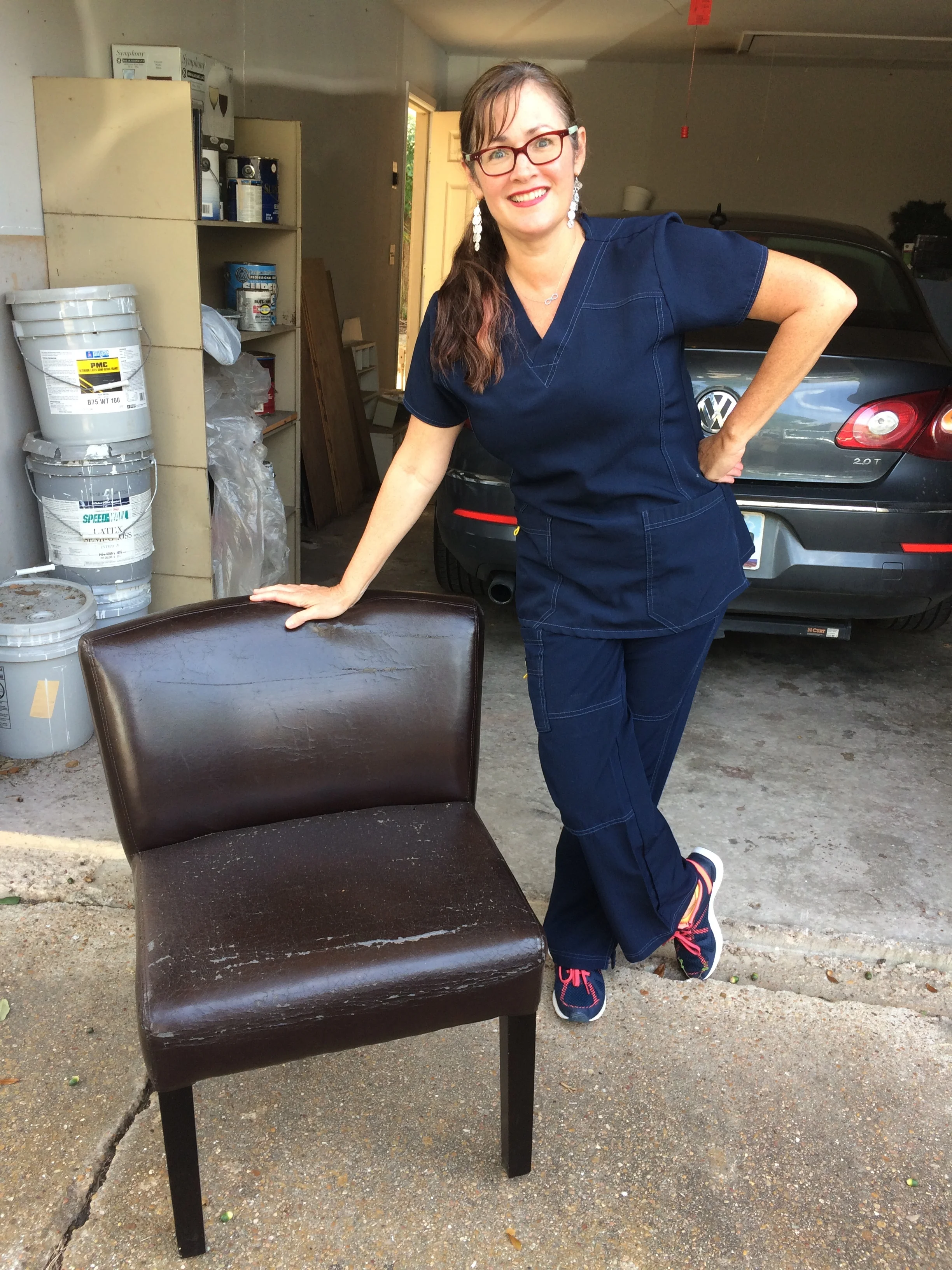 She put two of these sweet chairs by her garbage Monday. Tuesday am she saw my request for a small chair to use in a sculpture. When she got to her office the garbage pick up only took one chair. She sent me a Facebook message and I ran right over.
