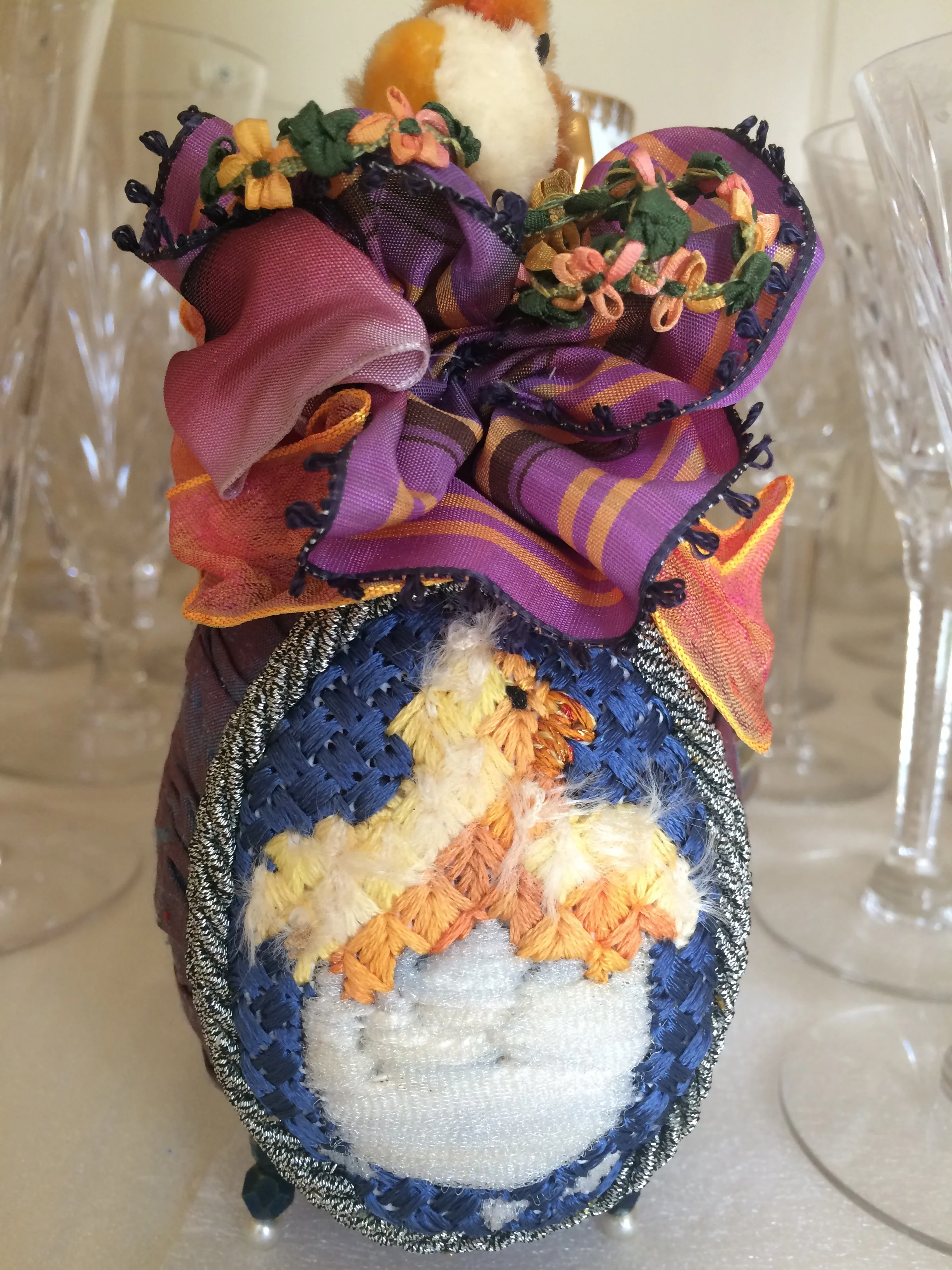There is a vintagebaby chick on top