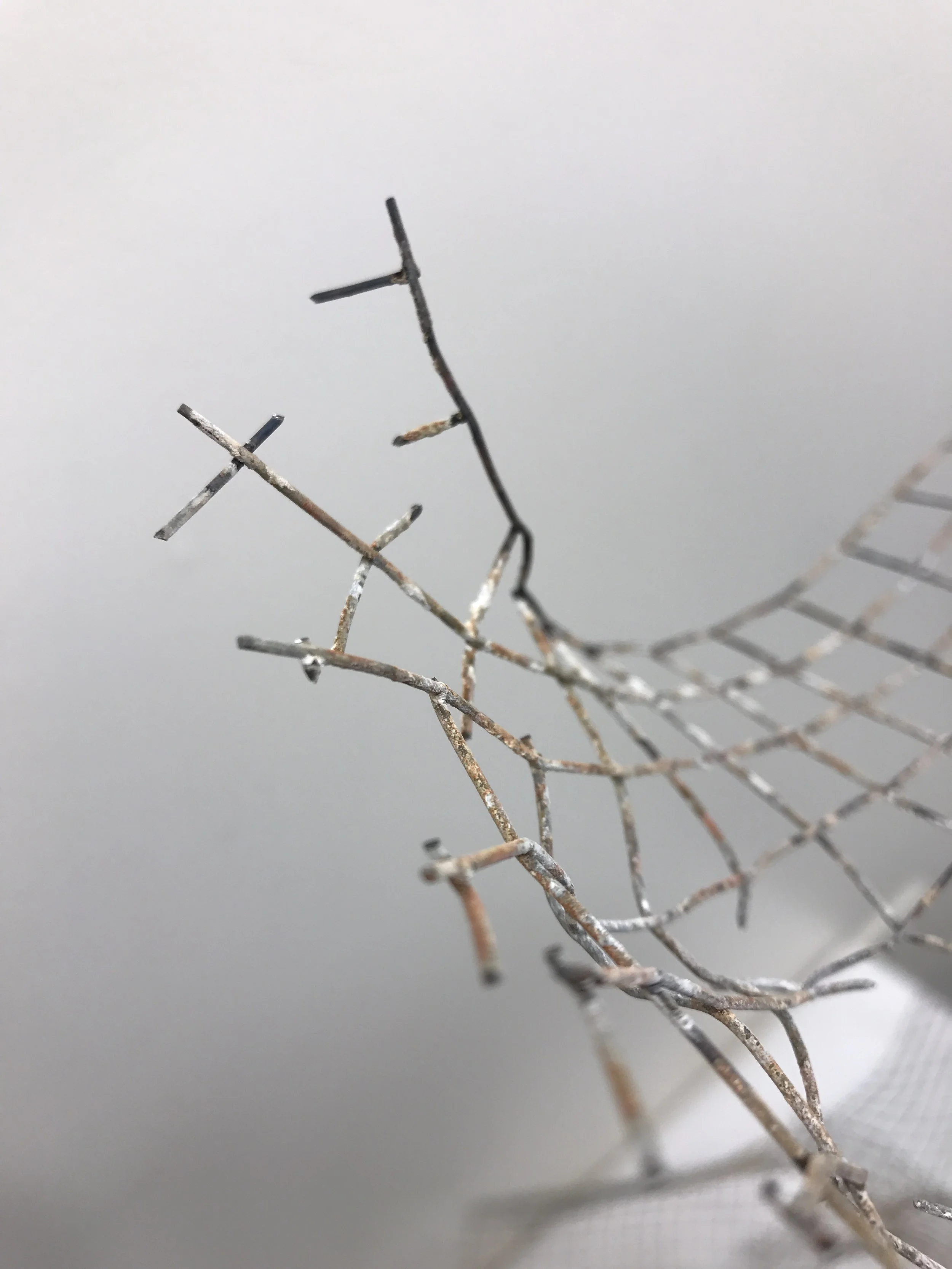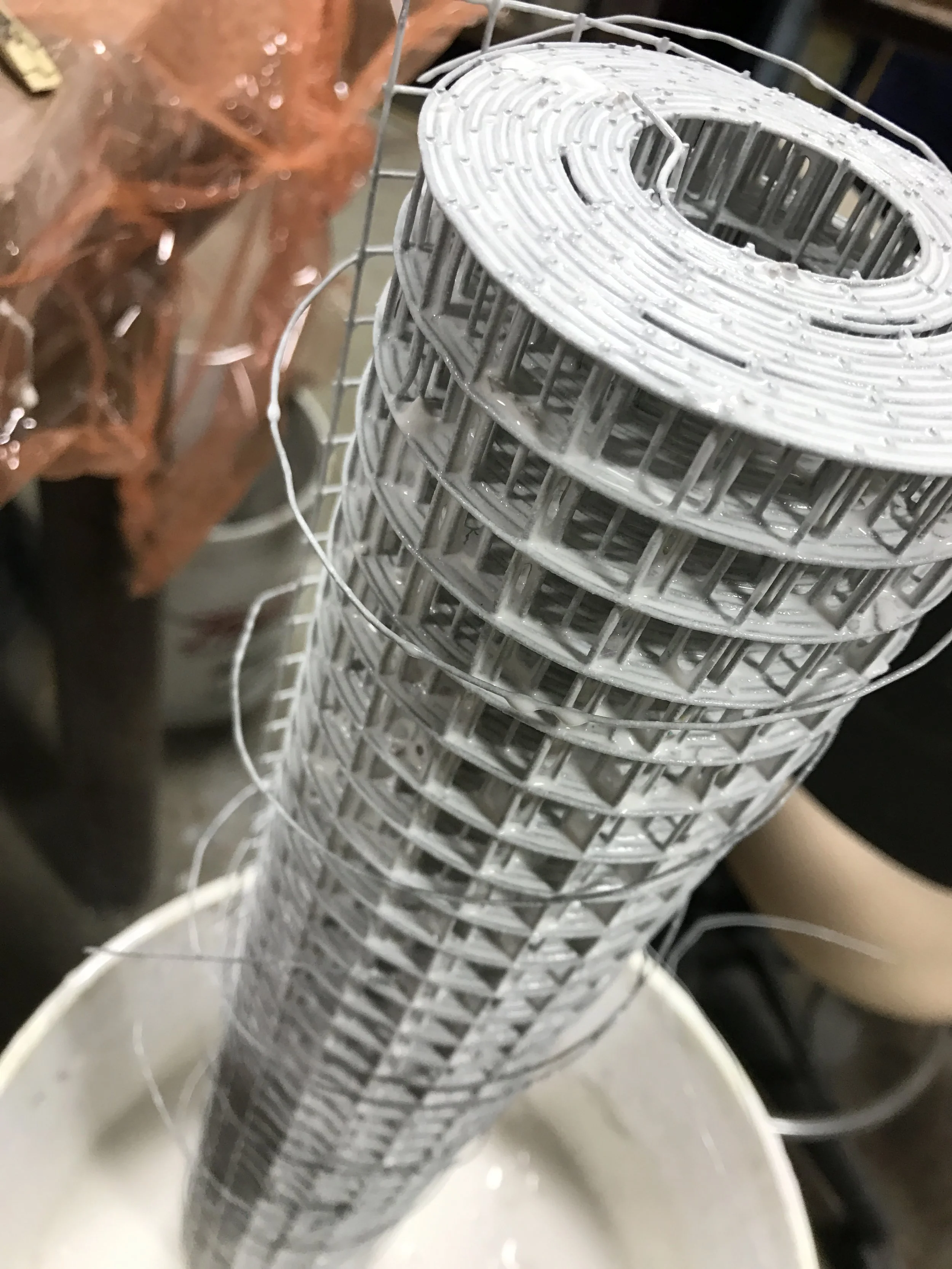 I am running out of this upcycled wire cloth. I bought a new role and hope I can recreate the amazing patina of the upcycled material. It is coated in zinc so it will not rust. The salvaged material has a bit of plaster and rust coating it that I want on my new wire cloth.