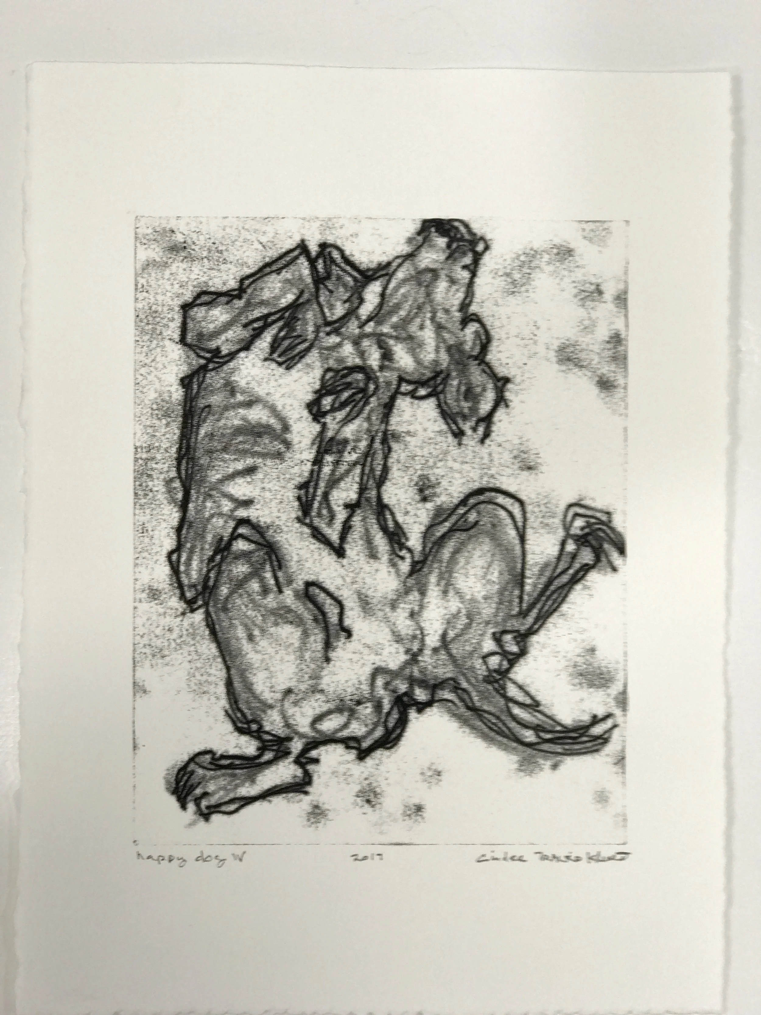 "happy dog IV" mono-print July 19, 2017 Cindee Klement 11"X 15" mono-print detail 11" X 15" mono-print