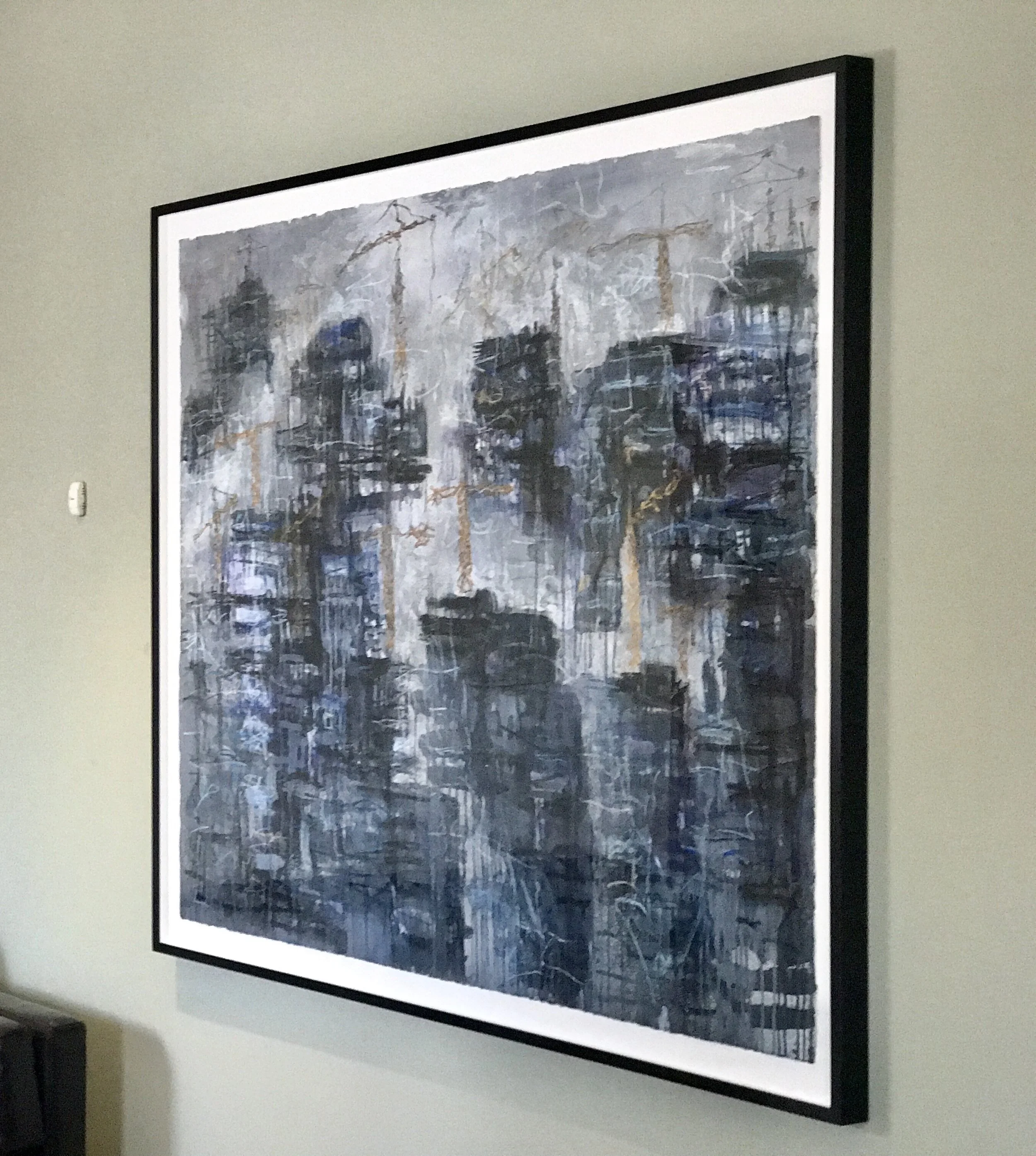 My first solo show. I was contacted in the spring by a curator, art appraiser and art consultant Elise Arnoult Miller, to have a solo show at the Nos Caves Vin in Wroxton. Elise picked the work this summer. I took twenty-one works on paper to Paul's place for framing. The installation was set up before Hurricane Harvey hit on Friday September 1st. I reached out to Paul on Wednesday. His retail shop is in mid town but his work shop is in Houston's new Chinatown which is near several of the areas that were badly flooded. Paul finally called me late Thursday. He and his wife were fine, their house did not flood and all my framed pieces were ready to be picked up.