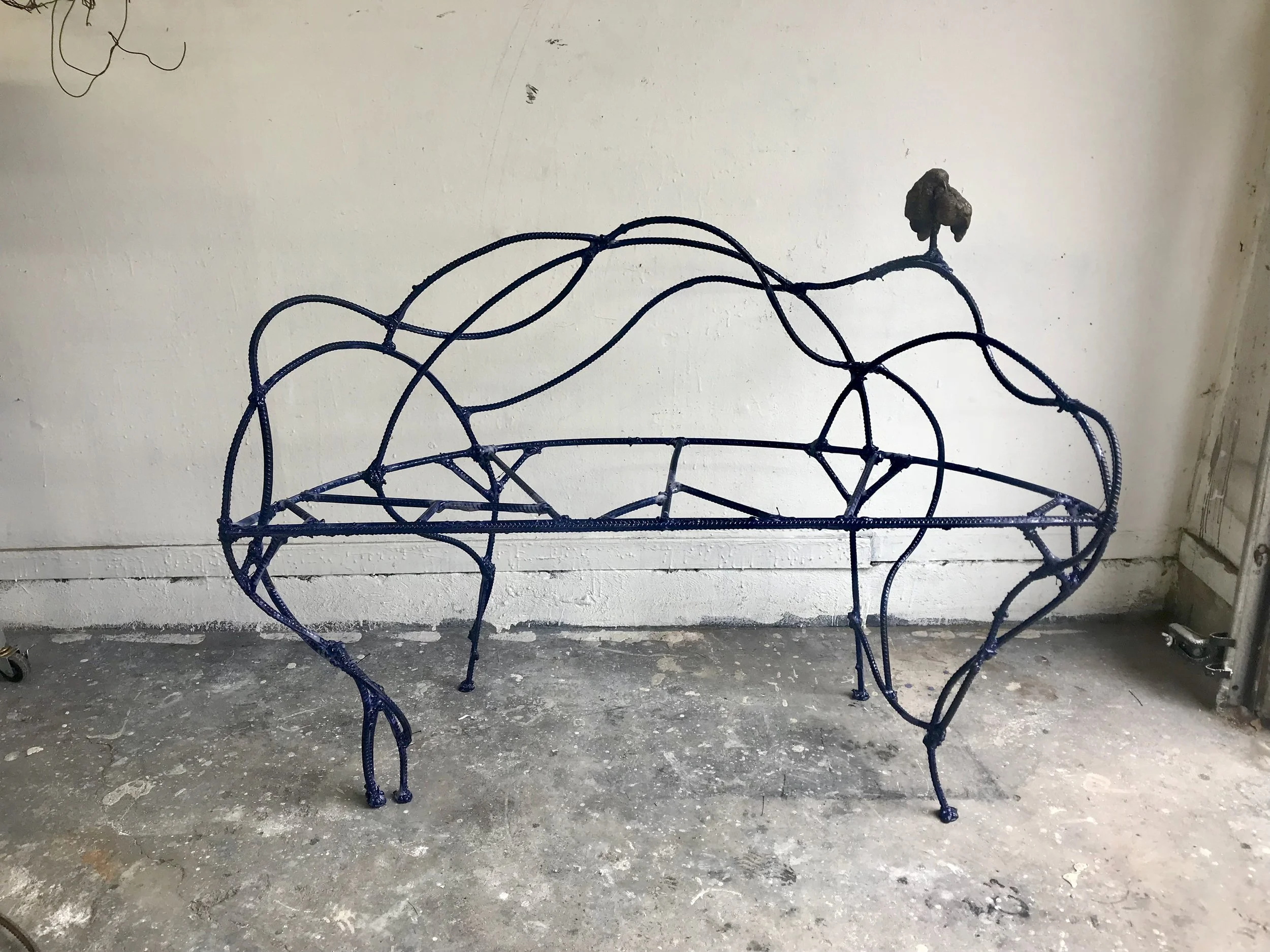 In order to keep Griffin and Alex’s bench from rusting, I am painting a coat of Restore, a rust retardant on the the armature.