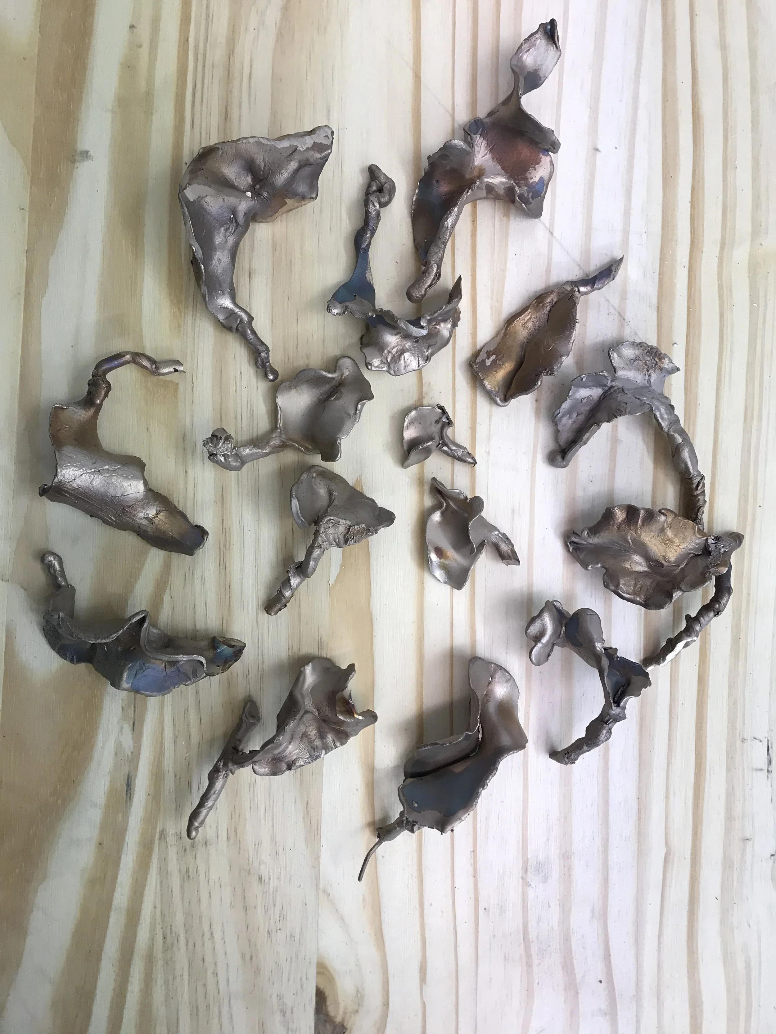 Breaking the shell off and placing off and cutting off the sprues that do not work as stems.