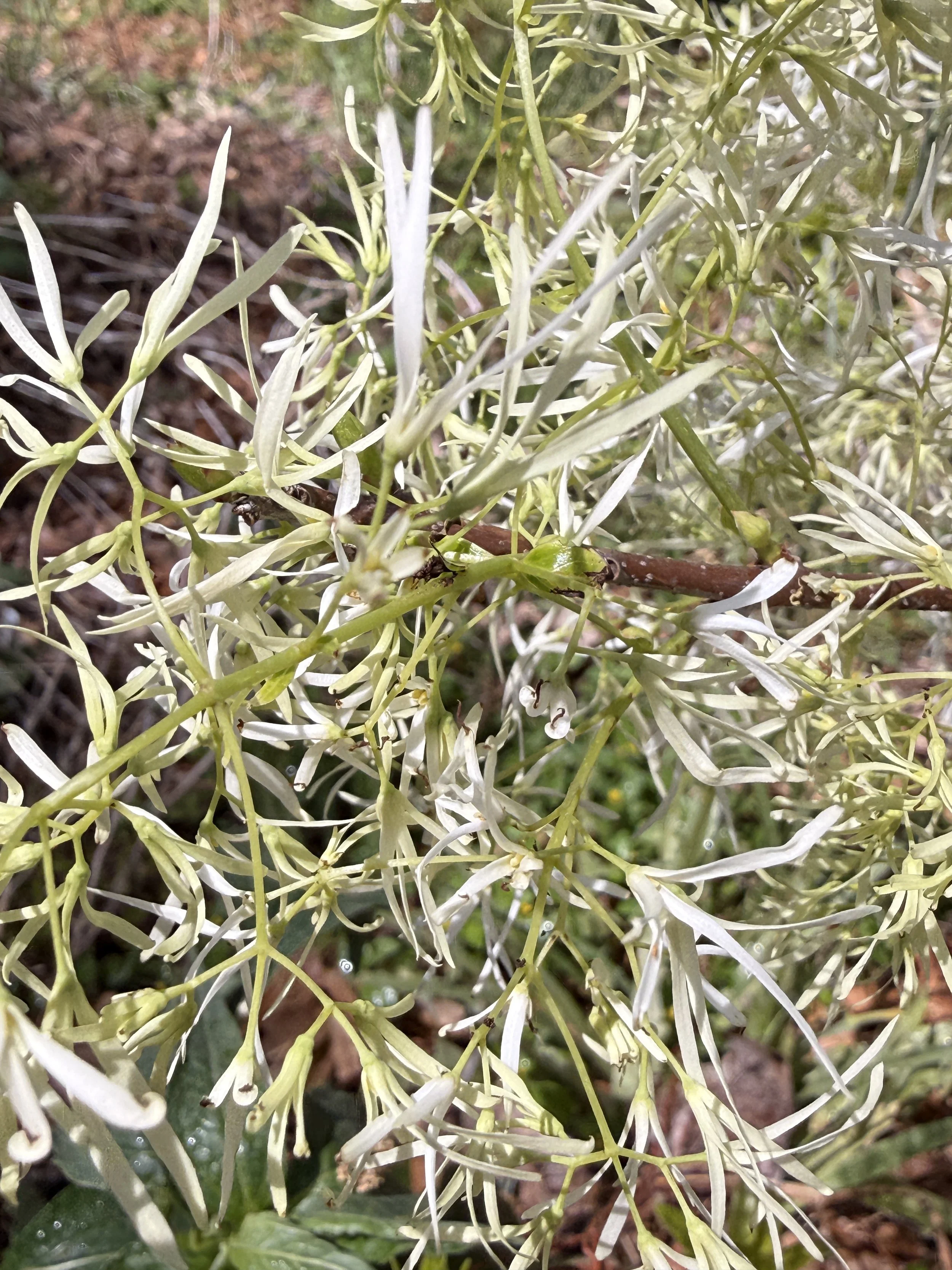 Last year I planted two American Fringe Trees — Grancy Greybeard — one on each side of the stone walking path that takes you into Sequel. They are a year old. Two feet tall. They are babies. And they are already teaching me something.