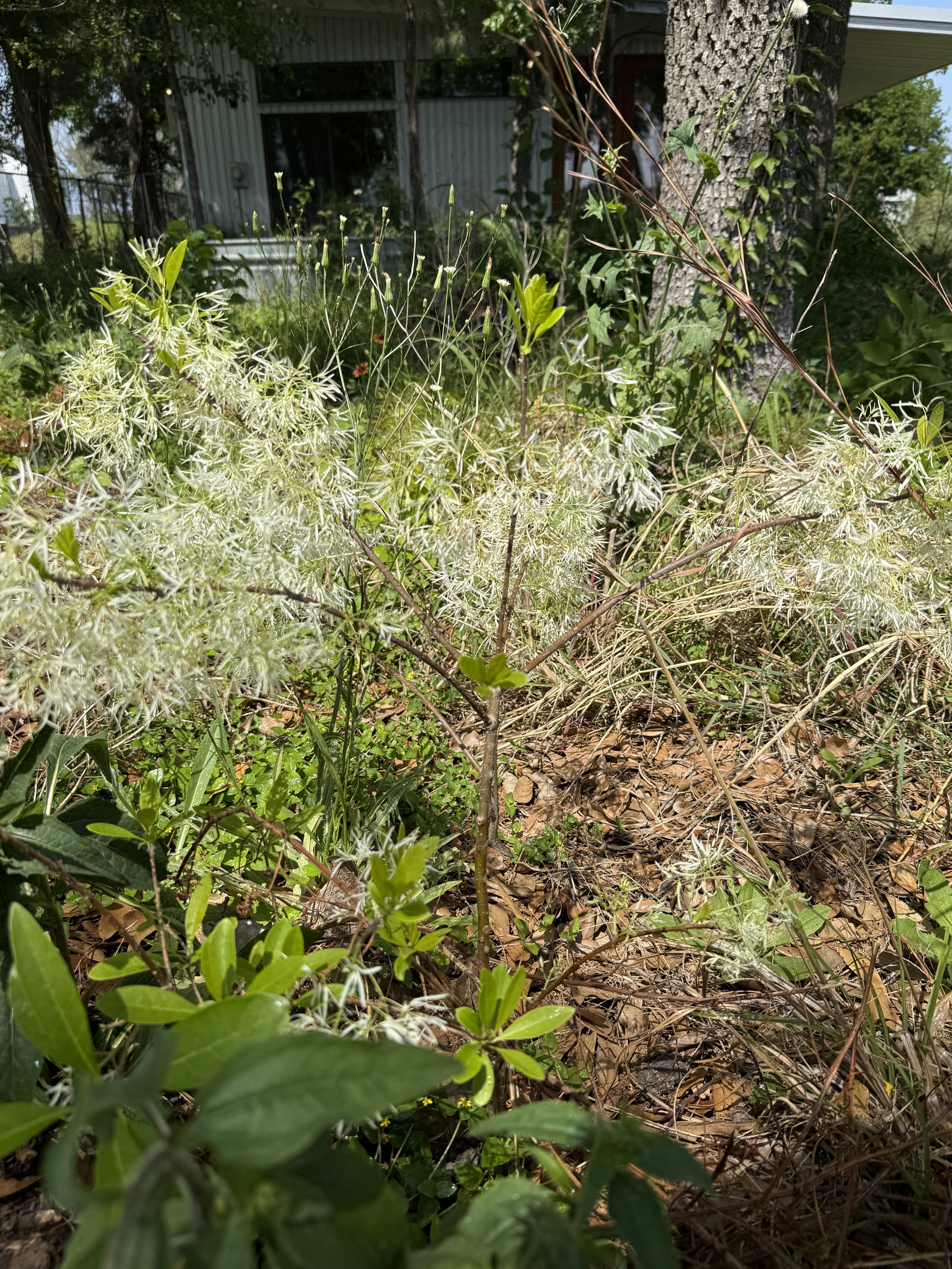 — Come April through June, the white fringed blooms open — long, thread-like petals cascading like an old man's beard in a coastal breeze. For native bees and butterflies, this is a critical nectar window early in the season when little else is offering.
