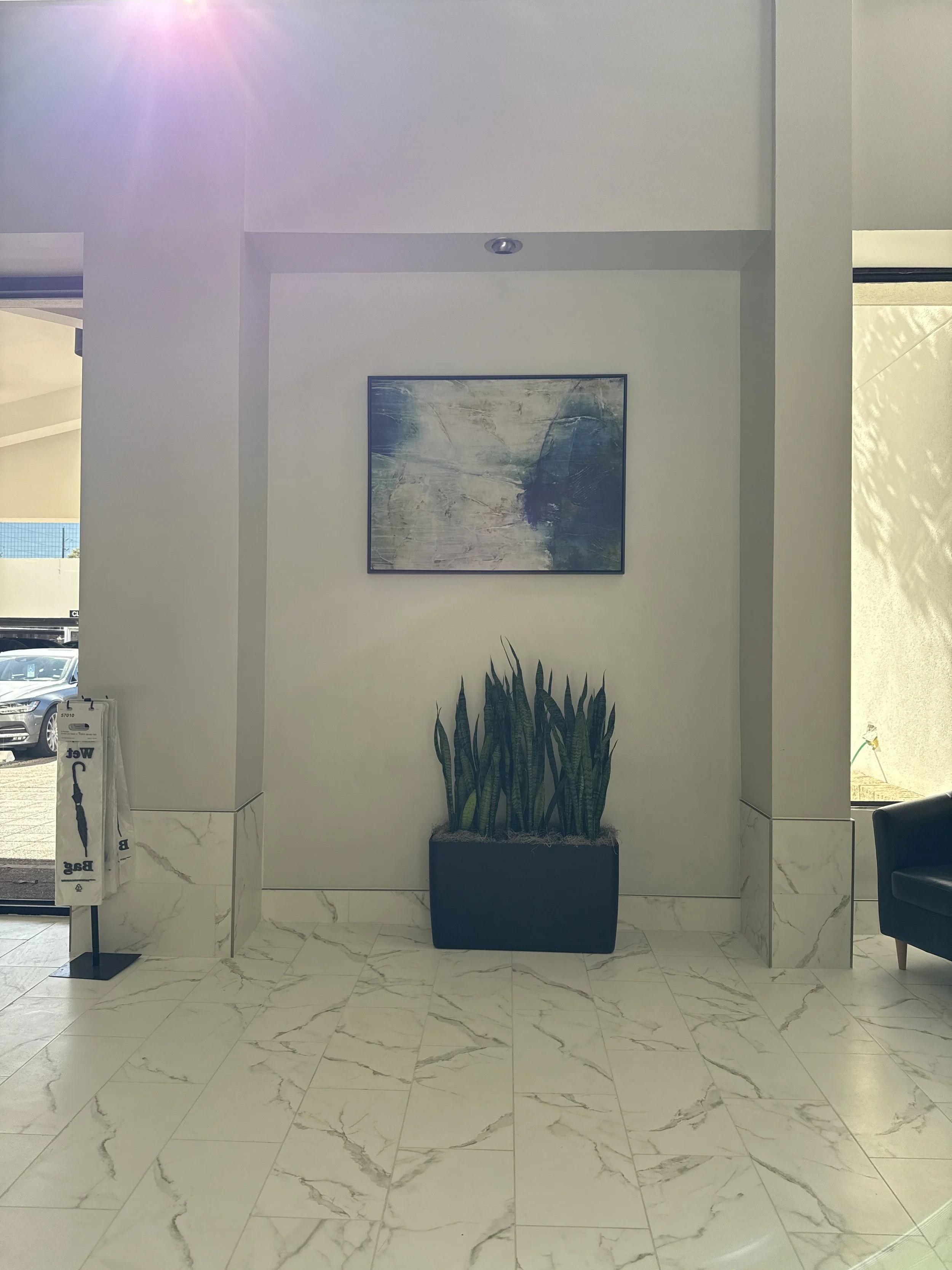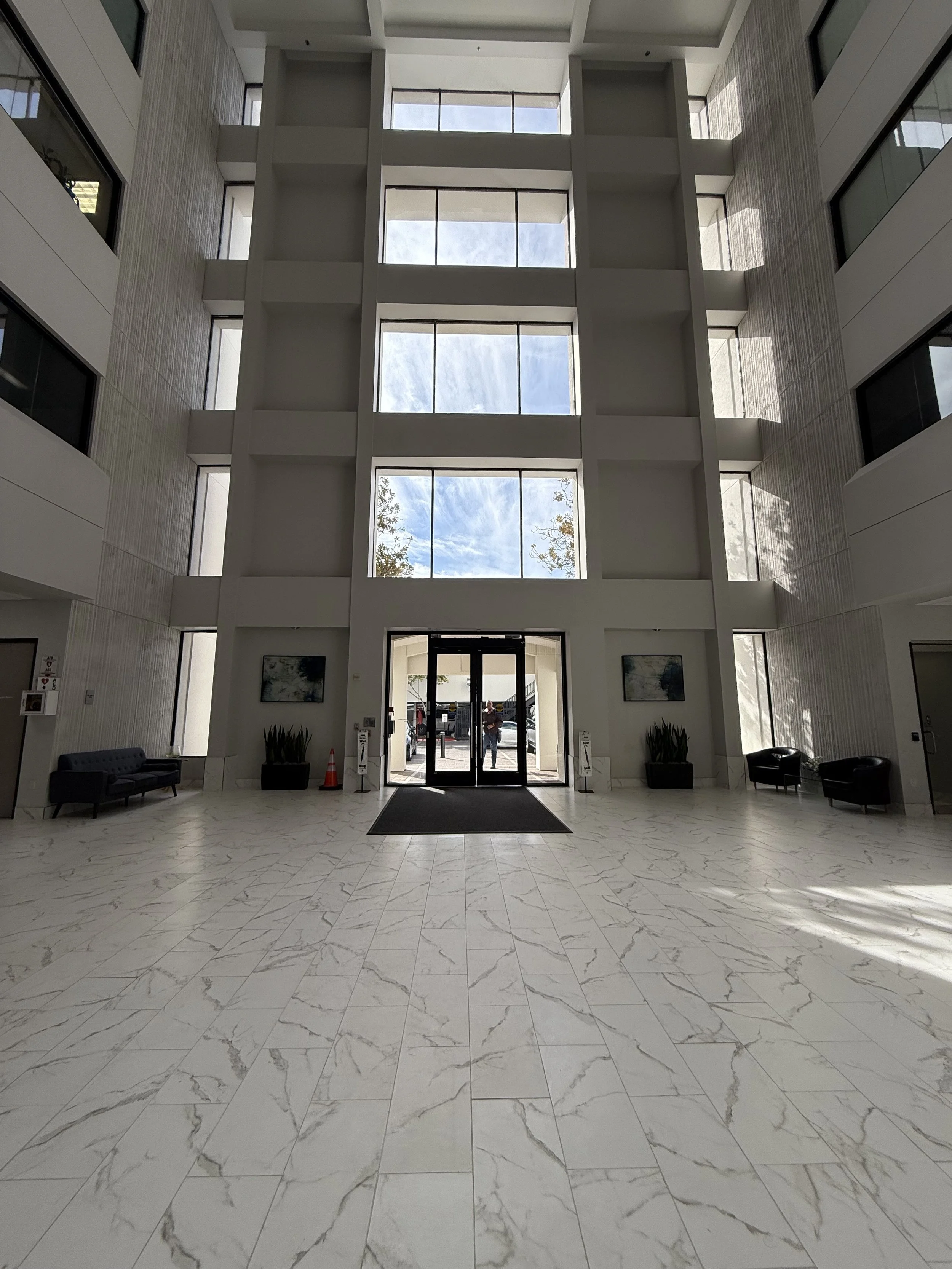 Specifically I was tasked with creating new pieces to replace the small decor elements flanking the entrance. However, after considering the entire space, I felt inspired to propose a different approach. The building features a stunning lobby with a grand, five-story ceiling, which presents a wonderful opportunity to enhance the buildings overall design more impactfully.