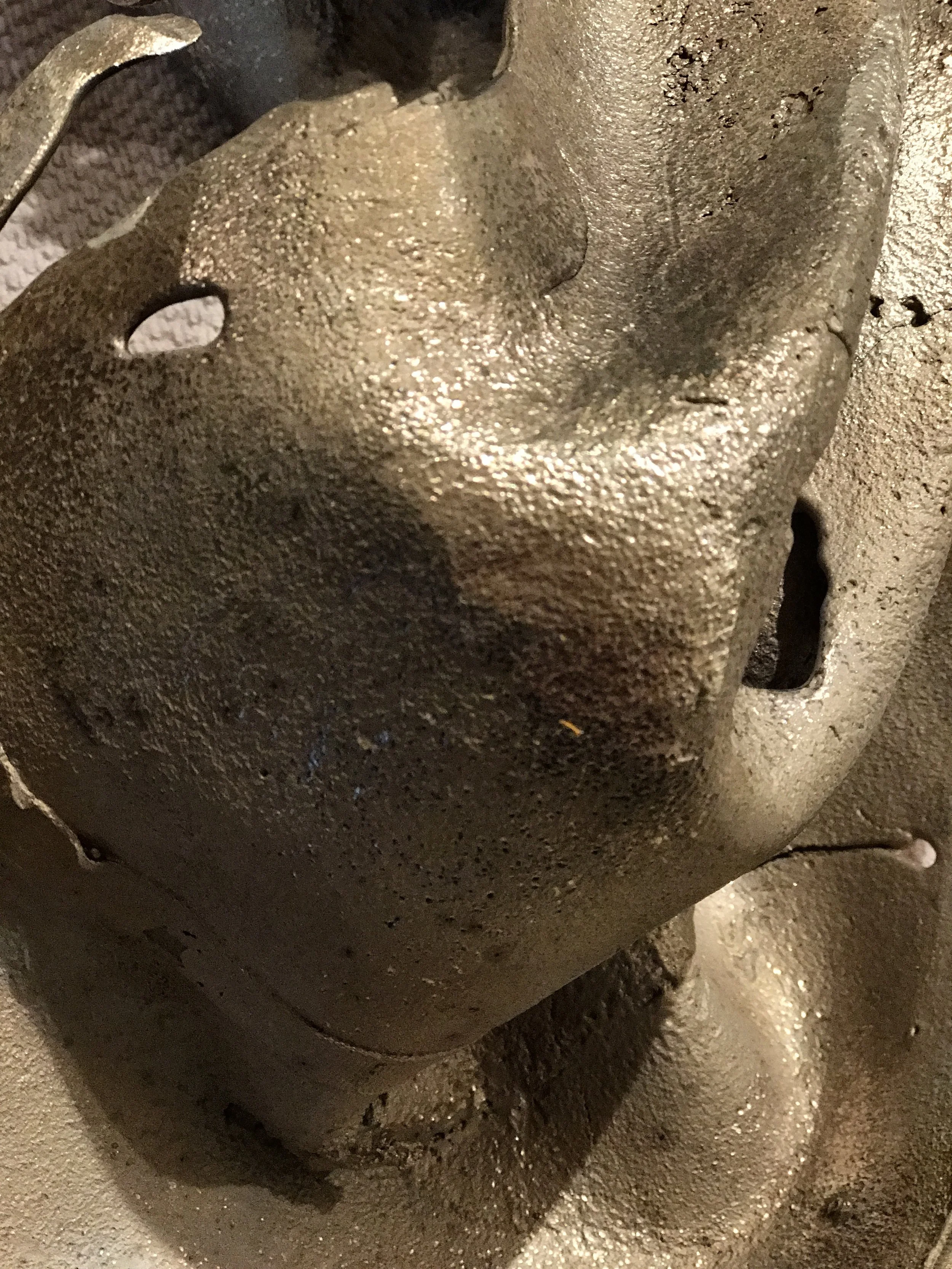 Last night I worked on chasing the piece. Chasing is repairing the surface from where the sprues were cut off).